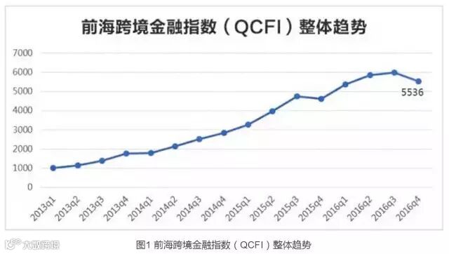 2017年4月26日,在广东自贸区前海蛇口片区挂牌两周年之际,深圳市前海创新研究院再度发布前海跨境金融指数(Qianhai Cross-border Financial Index,QCFI)。该指数由深圳市前海创新研究院与香港大学联合研究,以季度为单位进行编制和发布,旨在全面刻画前海作为“我国金融业对外开放试验示范窗口”和“跨境人民币业务创新试验区”的创新活跃程度,集中体现自贸试验区、前海深港合作区金融开放创新成果,持续动态反映金融开放创新水平。