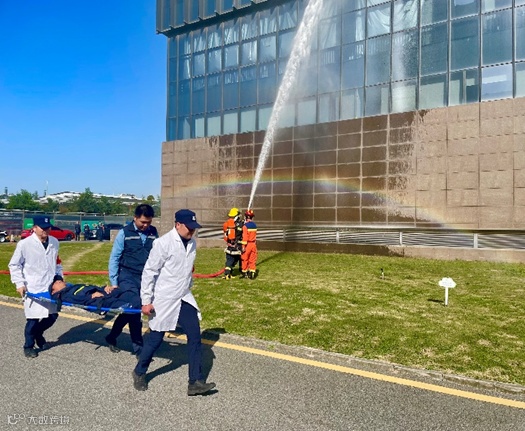 随着模拟火警的烟幕弹点燃,现场发生了“火警警情”。火警信号发起后,火灾现场疏散人员立即弯腰捂住口鼻,在疏散组人员的引导下按秩序离场。灭火行动组、疏散组、警戒组、救护组、后勤保障组、设备组6个演练小组各就各位,默契配合,有序地开展各环节工作。在演练过程中,指挥人员沉着冷静,参与人员反应敏捷,圆满地完成了预定科目的演练,进一步加强了园区企业快速处理突发事件的能力和团结协作的意识。