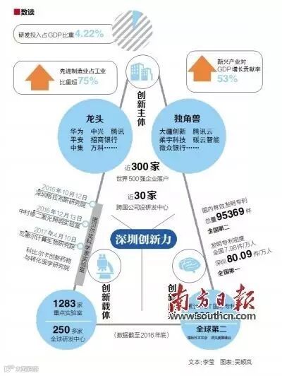 以深圳为例,截至2016年,深圳已支持企业、科研机构在全球建成250余家研发中心,建成70家集科学发现、技术发明、产业发展于一体的新型研发机构,1283家国家、省、市级重点实验室等创新载体。
