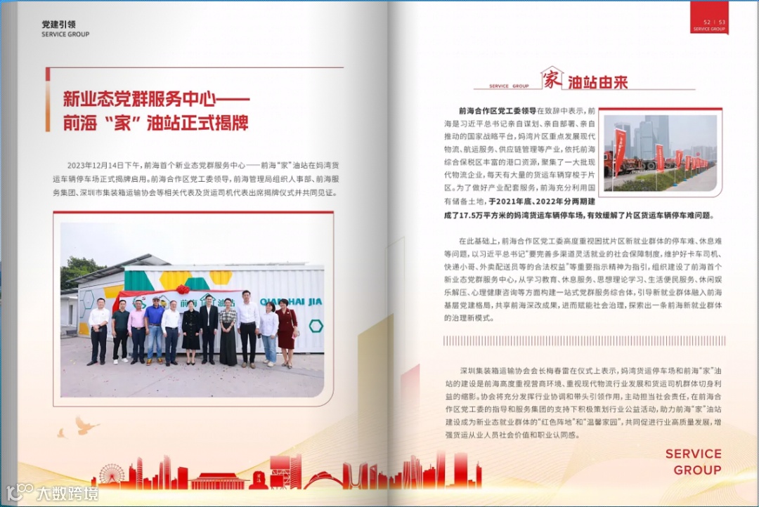 “党建引领”栏目中,着重介绍了新业态党群服务中心——前海“家”油站的揭牌仪式。此次“家”油站的正式运营,实现了党建工作与业务发展的紧密融合,为广大市民群众提供了更为优质的服务。