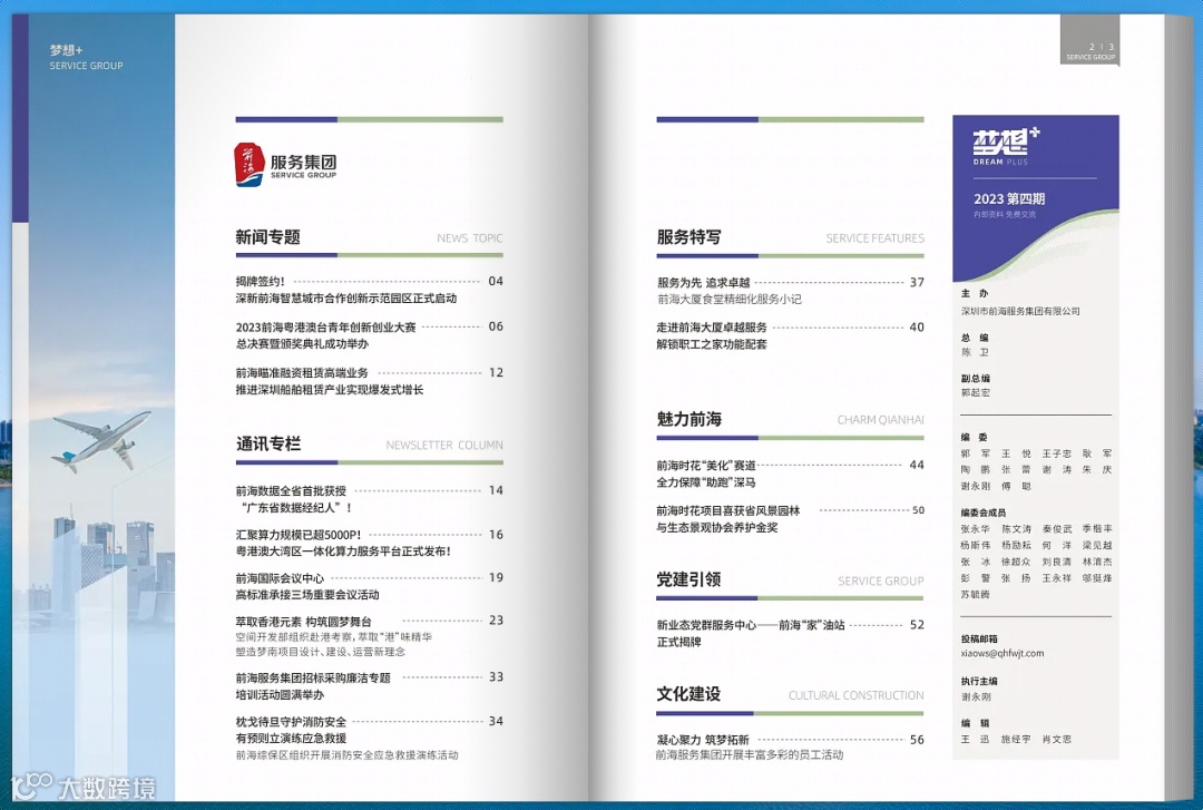 企业内刊采取季度刊发形式,本期《梦想+》分为新闻专题、通讯专栏、服务特写、魅力前海、党建引领、文化建设6个版块,通过信息整理向大家展示集团的业务成果、荣誉获得、杰出服务事迹、党建工作引领以及文化创新活动等方面的内容,致力成为全体员工了解集团发展动态的重要窗口,凝聚发展共识,提升学习积极性。