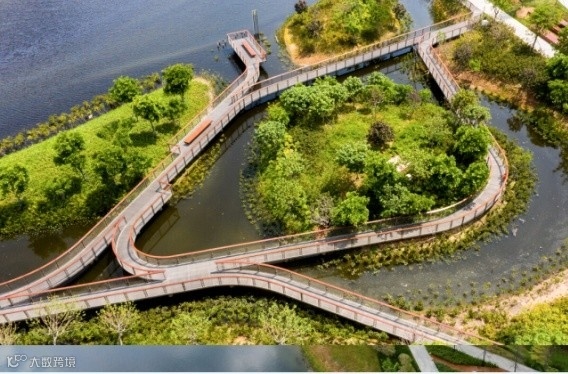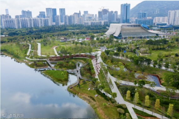 前海石公园桂湾河水廊区级湿地公园坐落于前海桂湾及前湾片区之间,处于前海中轴线,是前海合作区建设的第一条水廊道公园。