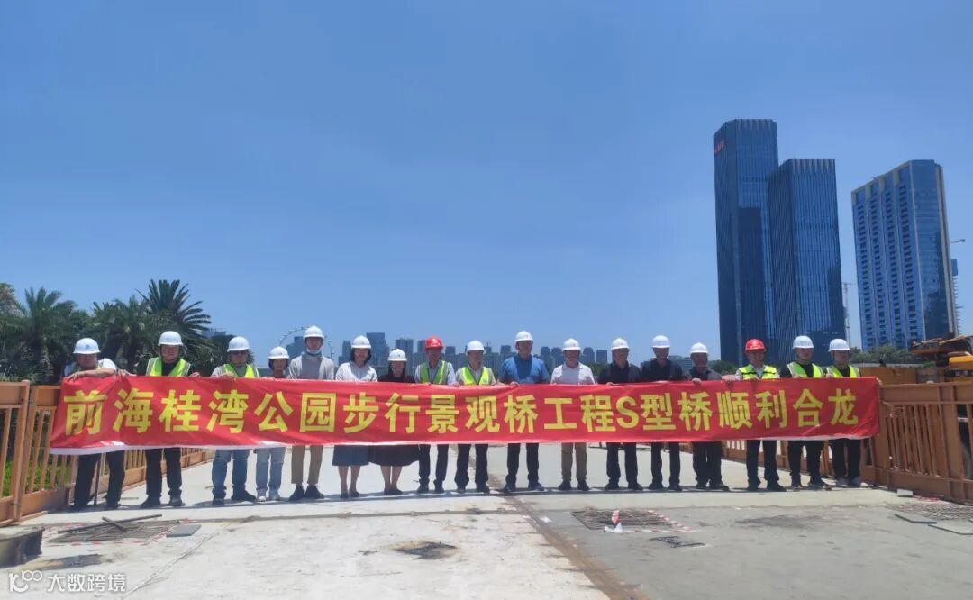 近日,随着南岸跨中A1段吊装完成,标志着前海桂湾公园步行景观桥工程-S型桥顺利合龙,为前海合作区第六立面提升试点项目完工目标(以下简称“第六立面提升目标”)奠定了坚实的基础。
