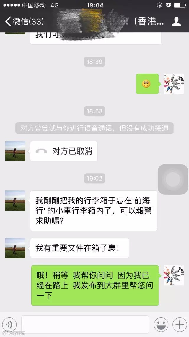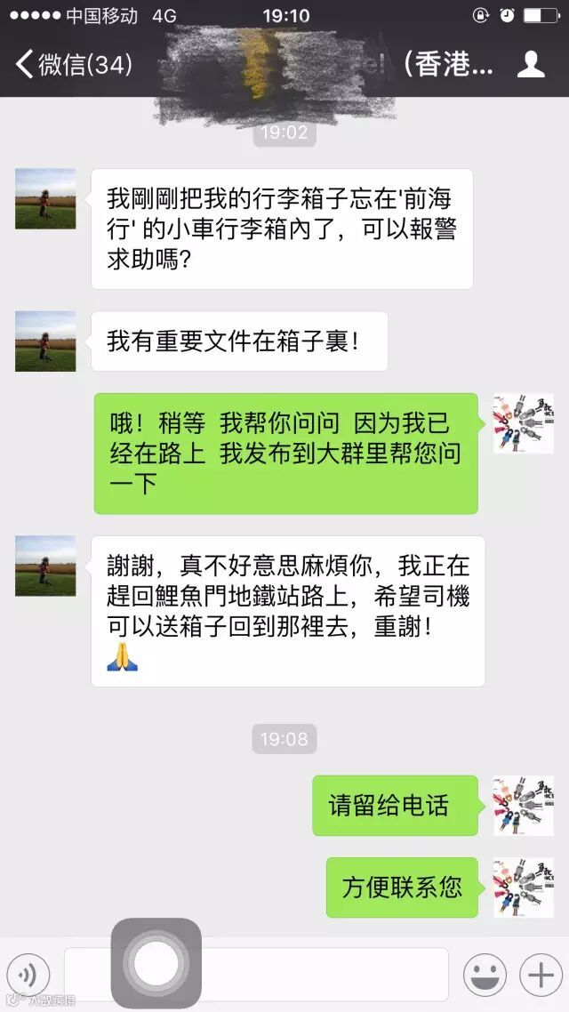 昨日(3月29日)傍晚约18点半左右, 一位香港客户从前海深港青年梦工场乘坐“前海行”出租小汽车前往鲤鱼门地铁站,下车时忘记拿上自己的随身行李箱。而后,经过前海联控多位同事的沟通协调,失主在第一时间取回自己的失物,并对相关人员高效、负责的服务水平和服务态度称赞不已!