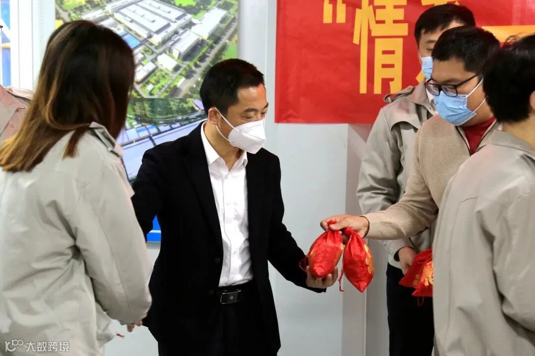 陈卫董事长一行将慰问品送到了工人代表手中,希望各位工友在新的一年里身体健康、万事胜意,在过年返乡的路上一路平安,开开心心的过一个愉快的春节。