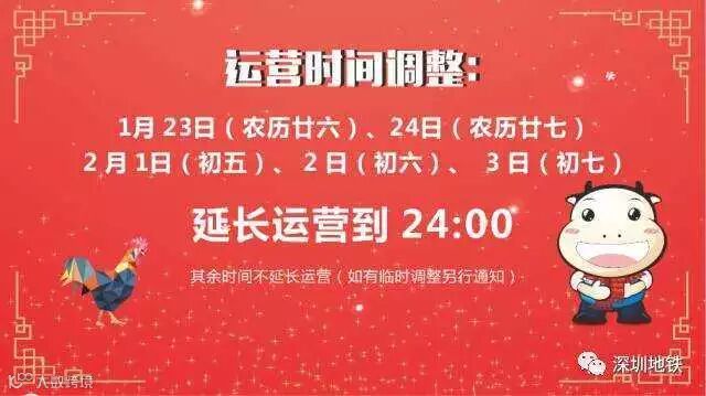 春节临近,为确保乘坐地铁的旅客都能顺利踏上回家的路程,深圳地铁调整并延长了春节前后共5天的服务时间。