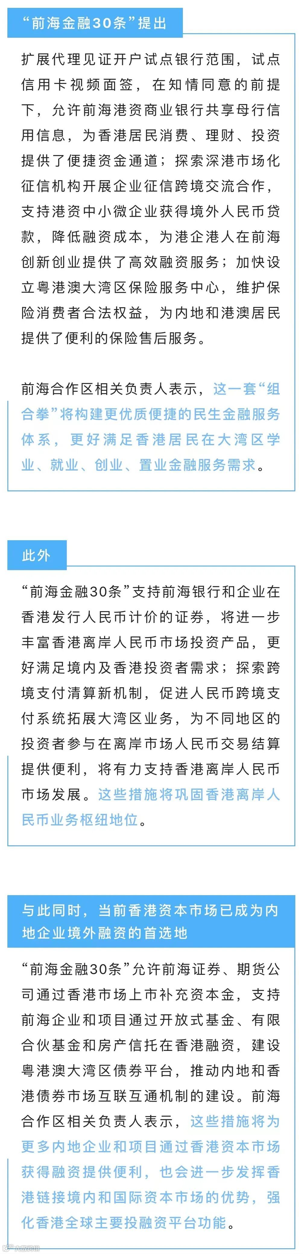 前海合作区相关负责人向记者表示,此次“前海金融30条”在深港金融市场互联互通方面也推出多项重大突破性措施。