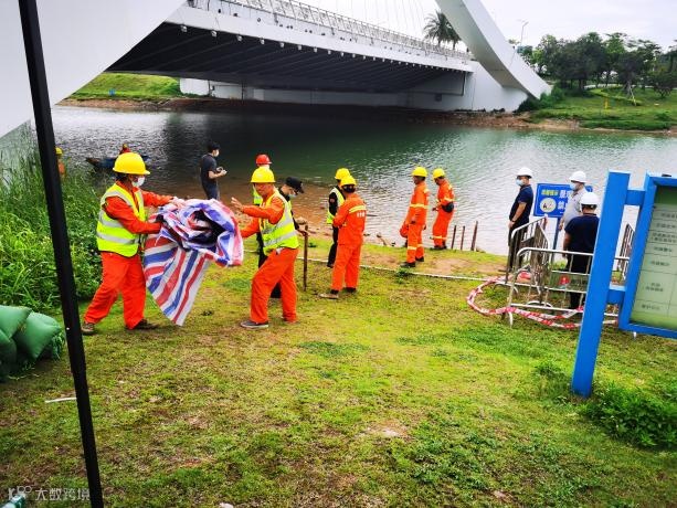 此次演练主要分为:应急上报、人员转移疏散、护坡加固处置、溺水人员救援四个部分,参演单位包括:深圳市粤城建设工程有限公司、深圳市广汇源环境水务有限公司、福保公司。