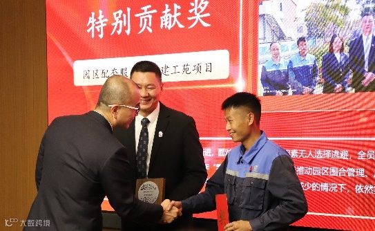 园区配套服务中心建工苑项目荣获特别贡献奖,周力军同志作为项目负责人分享了团队在过去一年的经验和感想。