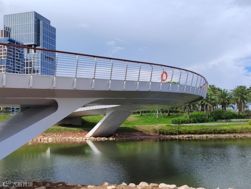 前海桂湾公园步行景观桥工程位于前海桂湾公园红线内,横跨桂湾公园南北两岸包含为入海口的1座S型桥及其余3座C型桥,其中S型桥为前海合作区第六立面提升试点项目。