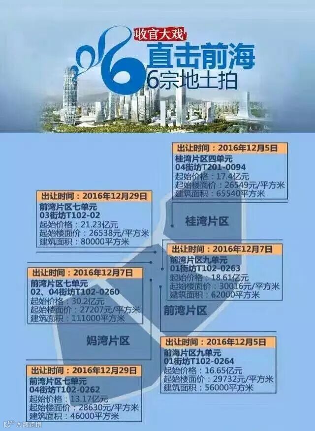 这些地块分别是:2013年完成出让的卓越地块(T201-0077、T201-0075)、华润地块(T201-0078)、世茂地块(T102-0244)、香江地块(T102-0245);2014年完成出让的腾讯地块(T201-0081)、弘毅地块(T201-0082)、恒昌地块(T102-0253);2015年完成出让的嘉里地块(T102-0255)。