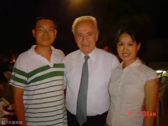 郭磊(左)和以色列前领导人佩雷斯合影