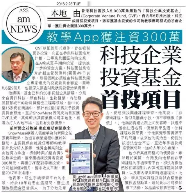 2015年6月,ShowMuse成功成為前海深港青年夢工場的培育計畫成員並于入駐當月便獲中國中央財經頻道挑選為深圳區最有價值的創業公司之一;同年8月,ShowMuse參加中國新媒體創業大賽「創業之星大賽」勇奪華南區總冠軍;15年底,香港財政司司長曾俊華到訪前海夢工場,ShowMuse作為園區創業團隊代表向曾俊華司長介紹夢工場。2016年伊始,ShowMuse大刀闊斧加速發展,多次在香港多家不同的大學內發表演講。2016年1月,ShowMuse成為全港首間獲得「科技企業投資基金」注資的科創企業,2月份在「Best of I.T Award 2015」大獎評選中,又斬獲本地初創科企-創勢力大獎。