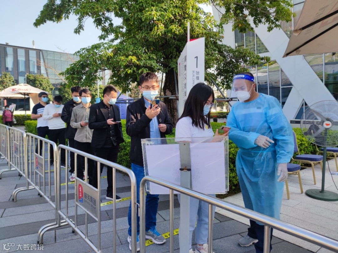为筑牢抗疫防线,风华社区在梦工场中区一号楼设置了常设核酸检测点。接到梦工场中区为定点核酸检测的通知,项目经理陈文强紧急召开防疫工作会议,分配各部门防疫工作事项,力争高效率配合风华社区防疫工作。安全经理陈思全提议对部门工作进行紧急调配,并统筹指示牌、铁马等物资,安排保安队现场秩序进行维护,及时引导来检人员有序排队,按公司要求落实疫情管控措施,严格检测来检人员入园需持有48小时以内核酸检测阴性证明或正在核酸检测中证明,同时扫描场所码才可以通行。项目所有人员进行轮值,每日配合医护人员核酸检测工作直至晚上九点半后才结束,日均完成核酸检测3200人次。物业团队集体战斗在一线,配合街道及社区做好核酸检测工作,与社区建立常态化工作衔接保障机制。