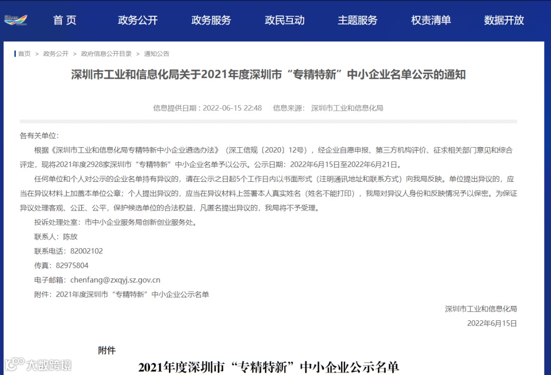近日,深圳市工业和信息化局公示了2021年度深圳市“专精特新”中小企业名单。信通公司凭借通信创新前海模式、智慧城市建设以及技术成果转化等方面的突出表现荣登榜单。