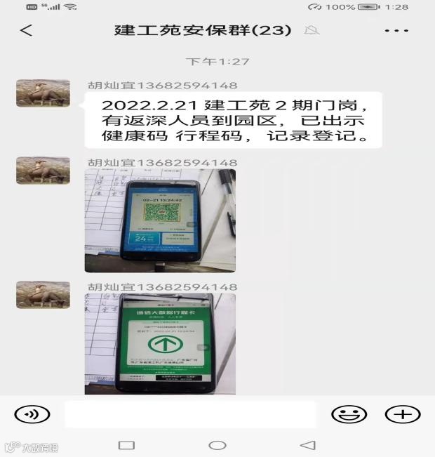 建工苑人员构成复杂,来自全国各地。面对节后返深入园高峰,建工苑项目跨前一步,做好应对,于节前制定《返深人员入园疫情防控方案》,下发通知园区租赁单位及物业单位执行,即严格执行六个必须:所有返深入园人员必须持有24小时核酸检测阴性报告,健康码必须绿码,必须非来自中高风险地区,体温必须正常,必须出示身份证登记签名完毕后入园。根据街道社区指示,建工苑率先启用场所码,提前张贴在园区正门口。人员入园需用微信扫场所码,健康码、姓名、核酸检测阴性准确方可入园,以便上级防疫部门流调。