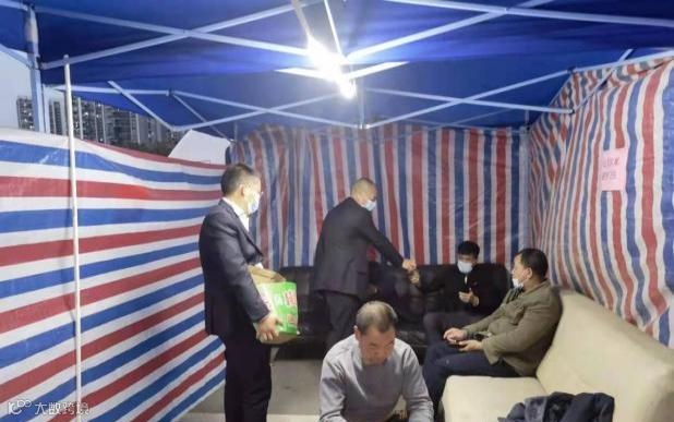 为应对节后返程入园高峰,联合物业建工苑服务中心办公室人员自2月15日起,每天主动加班加点,联合建投公司成立党员先锋岗,服务入园工人。自元宵节以来,建工苑每日入园200余人,近期广东持续降温降雨,面对寒风冷雨极端天气,建工苑在一、二期门口及时搭建六顶帐篷,帐篷里提供床铺、被褥、沙发、桌椅、开水机、取暖器、灭火器等,物业仓库储备500人份面包、瓶装水、桶装水、八宝粥、方便面,为首次入园等待24小时核酸检测工人提供休息、取暖、开水、面包等一线后勤服务,获得了工人师傅的赞誉。