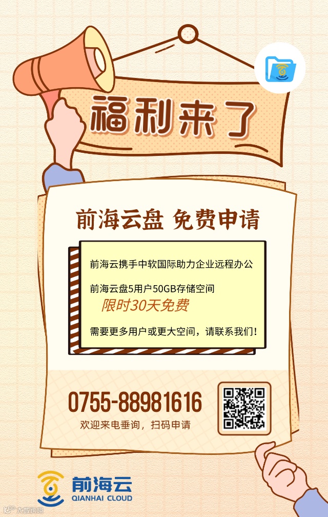 码上申请免费云盘服务 更多精彩尽在“前海云 ”