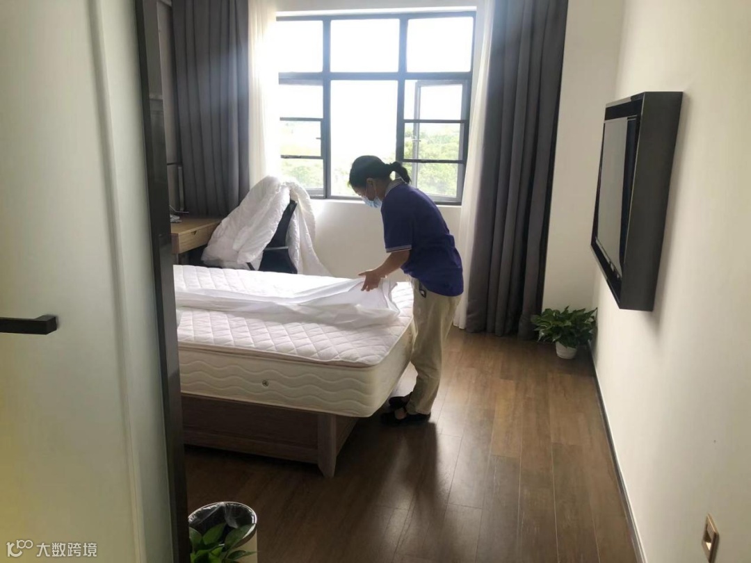 酒店管理公司工作人员正在整理房间