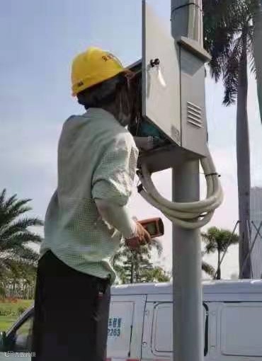 信通公司工作人员正在对监控设备进行检修