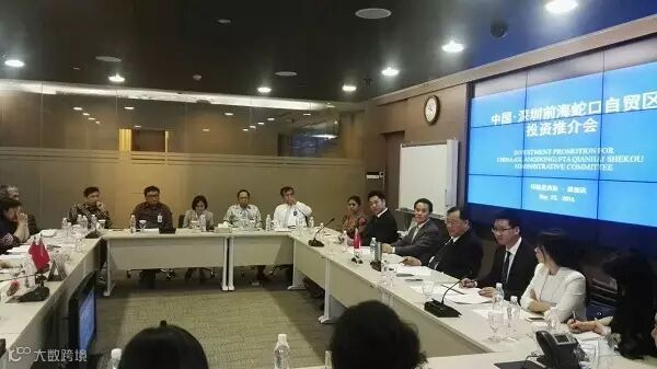 当日上午10:30(印尼雅加达时间9:30),考察团在雅加达召开了“中国•深圳前海蛇口自贸区投资推介会”。印尼国家工商总会、南苏门答腊省、印尼投资及贸易促进会、印尼国家银行协会、印尼人民银行、印尼储蓄银行、印尼国家银行、曼迪利银行和印尼国家工商总会部分会员企业的有关负责人参加了会议。