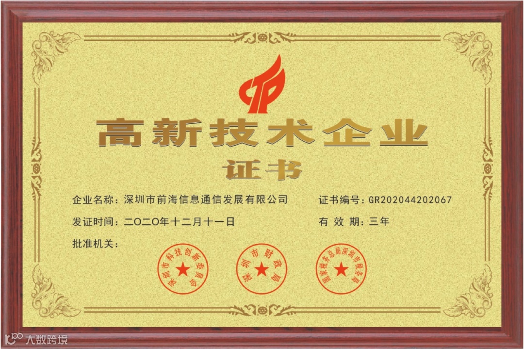 近日,深圳市前海信息通信发展有限公司(以下简称“信通公司”)通过“国家高新技术企业”认定,并正式收到由深圳市科创委、深圳市财政局、深圳市税务局联合颁发的“高新技术企业证书”,正式迈入国家高新技术企业行列。