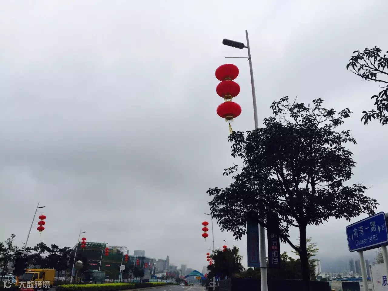 年关将至,空气里除夕的氛围越来越浓厚。本周一阵寒潮来袭,深圳也瞬间转入隆冬腊月,嗖嗖的冷啊!今天来前海,冷雨中看到前湾一路道路两旁挂起了红灯笼,满满都是年味儿。