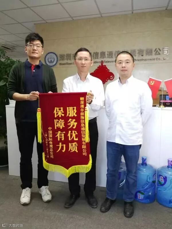 11月13日上午,中国国际电视总公司将一封感谢信和一面“服务优质、保障有力”的锦旗送到前海信通公司,对信通公司提供的通信支撑给予了衷心感谢和高度评价。