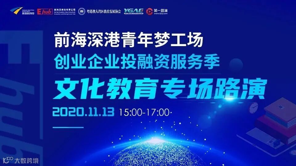 2020年11月13日,由前海科创投控股有限公司主办,前海深港青年梦工场、粤港澳大湾区教育发展协会、粤港澳大湾区国际智慧教育孵化器、第一路演联合承办的前海深港青年梦工场创业企业投融资服务季系列活动的第三场——文化教育专场线上路演圆满落幕。