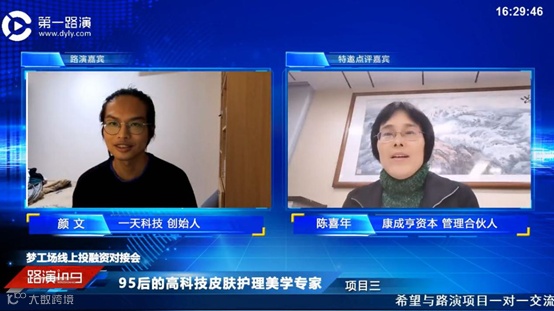 “一天科技是令人惊喜的项目”,康成亨资本管理合伙人陈喜年对此项目表示看好。她认为,这个项目的市场发展规模和趋势毋庸置疑;其次,95后的护肤体验,产品和群体定位非常清晰明确;创始人重视研发和知识产权,产品有一定的核心竞争力,随著现在国产品牌成长态势向好,一天科技的新渠道和新模式,以及家庭化护肤的趋势非常有前景。