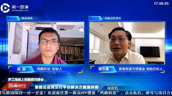 此次对接会由第一路演董事长高虹女士亲任主持,并通过第一路演APP全程直播连线,对接过程中邀请到了康成亨资本管理合伙人陈喜年、香港英诺天使基金创始合伙人谭伟豪、国宏嘉信资本创始合伙人马志强、大湾区共同家园执行董事王捷等大咖机构投资人连线点评。来自梦工场的智能匹配金融服务提供商橙π科技联合创始人郭振,AI+主题乐园社交方案提供商森若科技创始合伙人蒋嘉,95后的高科技皮肤护理美学专家一天科技创始人颜文,通用核心传感器产品提供商闪龙科技创始人邓小波,智能云应用交付平台解决方案提供商鸬鹚科技创始人陈旃,视频学习内容运营商卡文迪科技创始人林文建等6位优秀项目代表穿越疫情,跨越时空,在特殊时期,通过第一路演搭建的桥梁与近百位投资人线上交流,六大项目同台竞技,展现一场精彩纷呈的云上零接触路演。