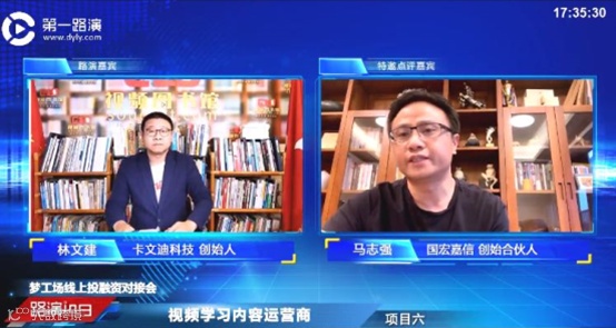 最后一家登台路演的企业是卡文迪科技,通过CED视频图书馆为入口,卡文迪科技计划构建全球化开放式联合创新集群。国宏嘉信创始合伙人马志强对此项目热辣点评,随著移动互联网的爆发,视频将成为占据我们内容消费最多的载体,他认为,这个项目方向上没有太大的问题,随著互联网流量的成本逐渐拔高,建议卡文迪科技可以考虑嫁接到大流量的平台,聚焦在主要的亮点和独特资源上,更能形成自己的核心竞争力。