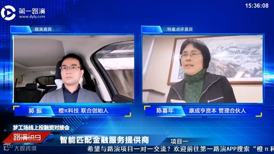 首家登台路演的企业是橙π科技。橙π以线下生活、消费场景为中心,一端聚合众多金融机构,一端聚合传统线下场景的金融消费需求,以AI、大数据、生物识别等技术手段,将金融产品,服务与消费需求精准匹配,实现金融消费者、金融机构与场景运营方的多方共赢。