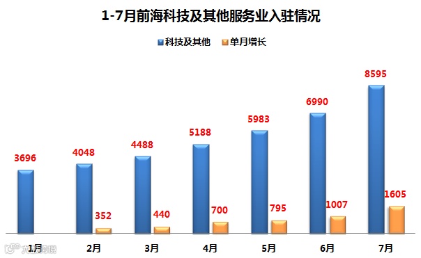 1-7月前海科技及其他服务业入驻状况