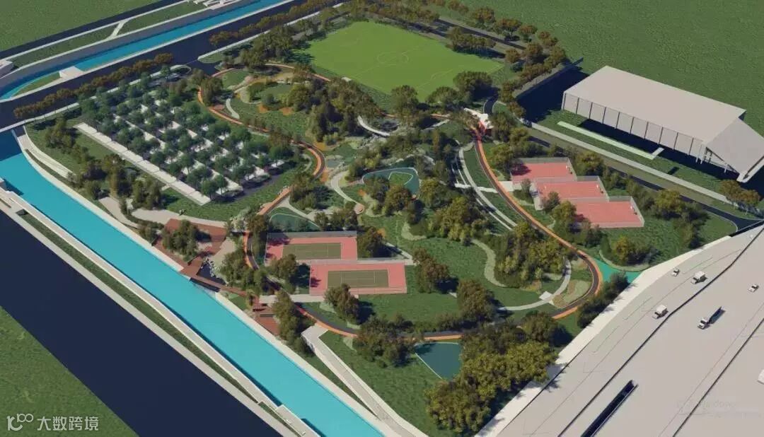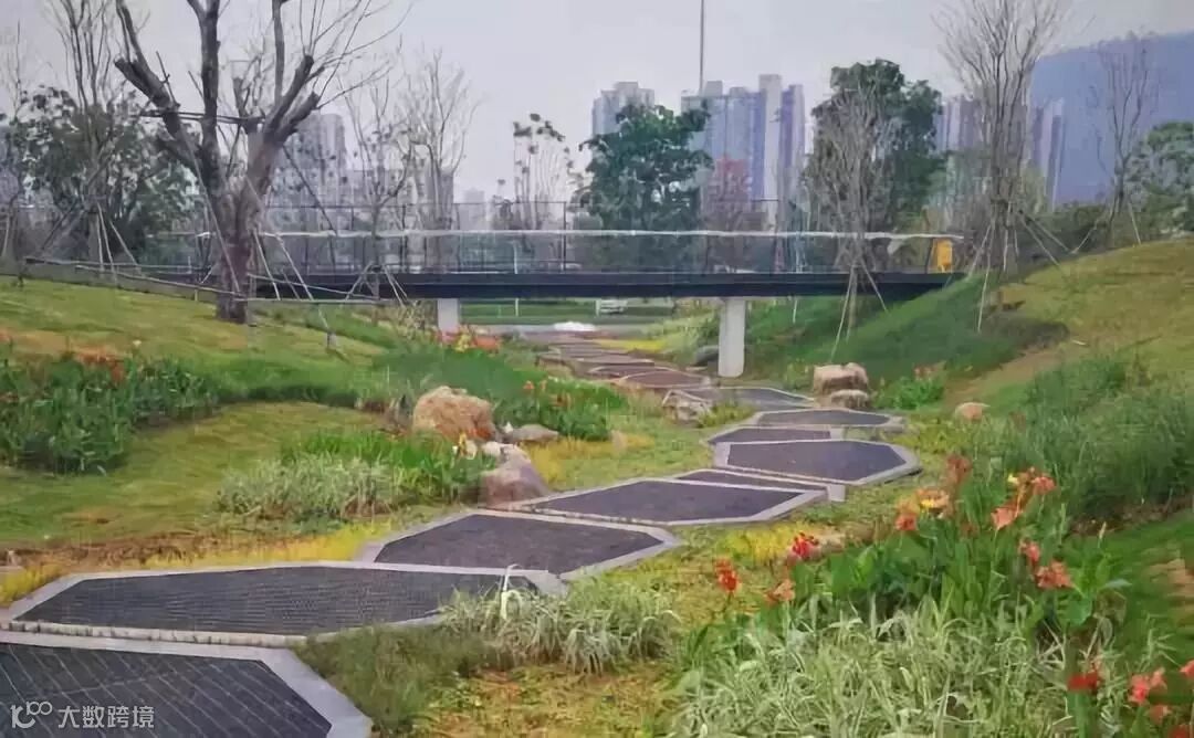 公园设计融入绿色环保、节能减排和海绵城市的概念。地面草坪设置多层次的具有蓄水、净水和释水功能的海绵体,运动场地面层选用绿色、无毒、无味的产品,始终将环保、生态理念贯穿项目设计、建设及运营中。