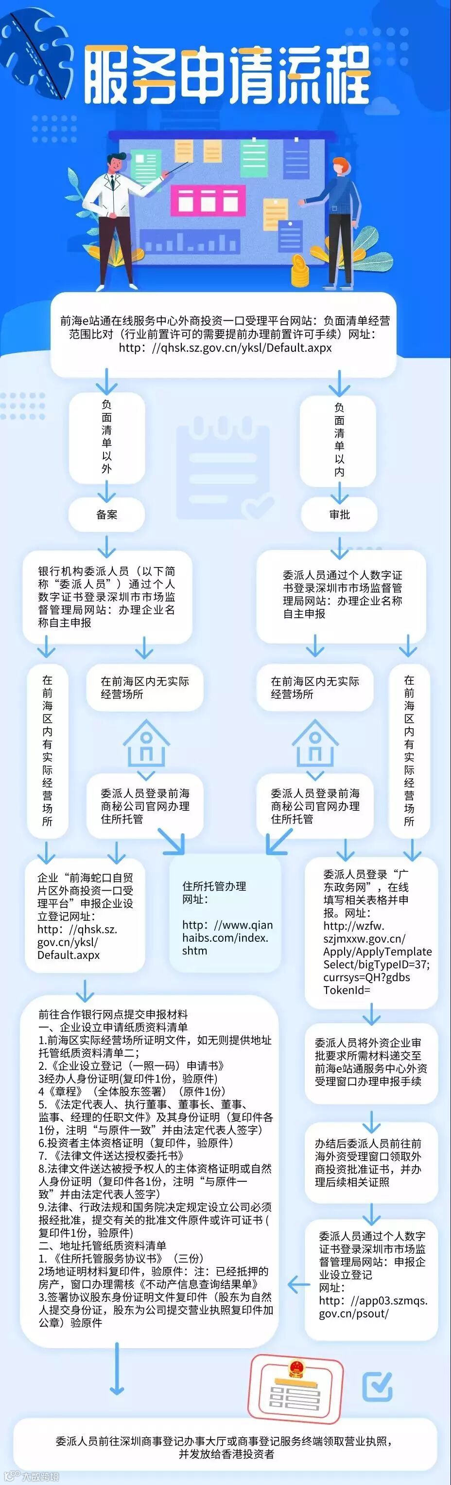 具体制度安排为,深圳市市场监督管理局与香港商业银行合作,借助银行完善的跨境业务网点及操作流程,委托香港商业银行代办香港投资者在深圳的企业注册、商务备案、企业开户等业务,免除其多次往返港深之苦,并解决香港投资者在跨境投资中面临的流程不熟等问题。