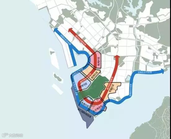 规划形成三个主导功能带,其中滨海一线地区以公共服务功能为主导,重点集聚市级大型公共服务设施以及滨海休闲商业中心;