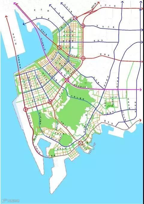 在道路交通方面,规划优化蛇口南部和赤湾片区干道路网,通过开辟新通道、建设地下快速路,构建半岛双U的路网结构。近期由沙河西路+望海路+兴海大道+月亮湾大道构成自贸区“U”型的快速路结构、由南海大道+赤湾二路+新小南山隧道+妈湾四路+梦海大道构成“U”型的干线性主干路结构,预留远期望海路接妈湾大道的可能性,形成沙河西路+望海路+妈湾大道的自贸区大“U”型的快速路结构。