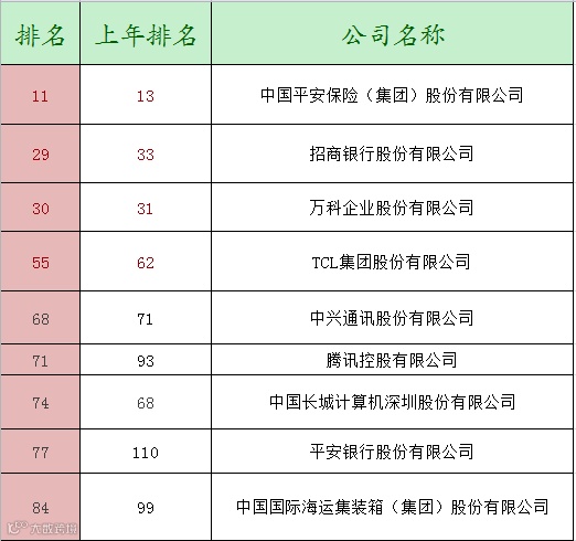 日前,《财富》发布2015年上市公司中国500强排行榜。榜单有9家深圳企业入围前100强。在入围的深圳企业中,平安保险集团以4628亿元的营业收入,位列榜单的第十一名,成为深圳入榜企业中的第一名。入围前100强的还包括招商银行、万科、TCL、中兴通讯、腾讯控股、中国长城计算机深圳股份有限公司、平安银行、中集集团等深圳知名企业。如果从利润看,招商银行则以559.11亿元,成为深圳利润最高的企业。