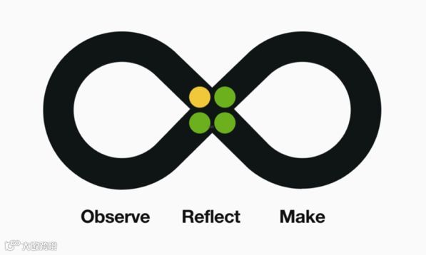 核心: IBM设计思维的核心是一组行为,集中在发现用户的需求和展望更好的未来。我们称之为一个循环,这个循环是一个连续的观察、反射和制造的过程。