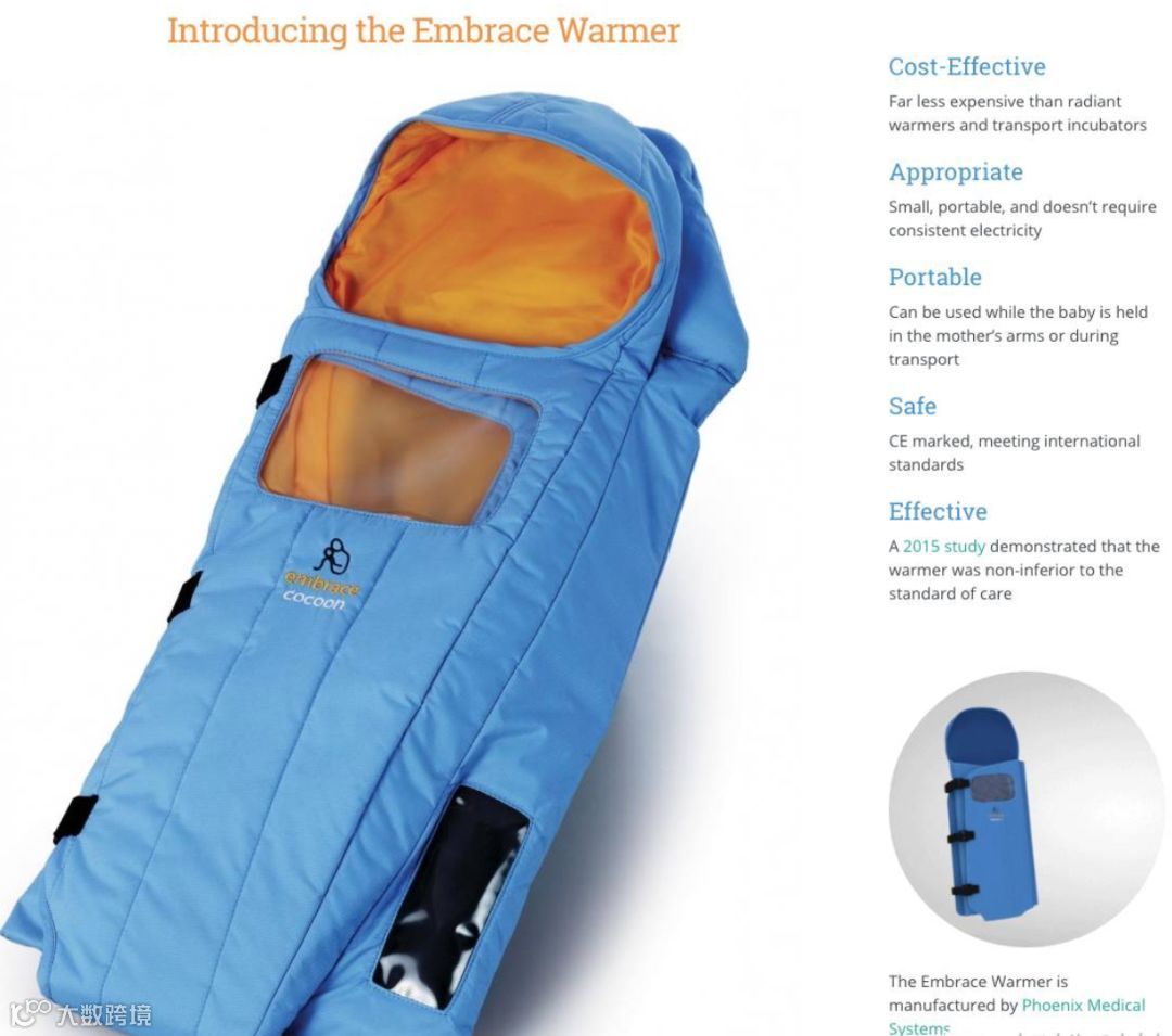 在发展中国家的贫困地区和欠发达国家,很多早产宝宝在刚出生几天里,因为没有条件在医院里得到足够的照顾来保持体温而夭折。Embrace 团队发现,每一年有一百万个婴儿在刚出生的第一天夭折,还有三百万的婴儿未能生存超过一周的时间,在早产儿夭折的案例里,有 98% 的案例是因为无法处在保暖的环境中。于是 斯坦福设计研究院 的学子就这个问题设计并开了 Embrace Warmer,从而帮助了好多欠发达国家的家庭,现在这个产品已经拯救了总计 20 万个婴儿的生命,对于这些家庭来说,多一个顺利长大的孩子就多一份生产力。