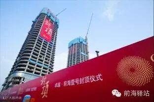 2月2日,位于前海桂湾金融商务区的卓越·前海壹号,喜迎一期“前海之门”主体结构封顶。作为前海的首拍项目的封顶具有重要象征意义,前海的建设发展又开始了一个新的篇章。当天上午十点,前海管理局张备局长,蔺宏副局长、唐绍杰副局长,卓越集团董事局主席李华先生、总裁李晓平先生、高级副总裁王卫锋先生,中建三局龚良庆先生等嘉宾一同来到卓越·前海壹号一期B座顶层,在前海目前的最高点出席了前海壹号封顶仪式。在简单而热烈的仪式上,中建三局龚总和卓越集团李华董事长先后发表了致辞,李华董事长对一直以来对卓越前海壹号项目给予高度关注和支持的省市级领导、前海管理局领导、合作单位及媒体朋友们表示感谢,也对前海未来更美好的发展表示了衷心的祝愿。最后,前海管理局领导、卓越集团领导和中建三局集团一同上台,进行混凝土浇筑仪式,共同见证了卓越·前海壹号一期的顺利封顶。