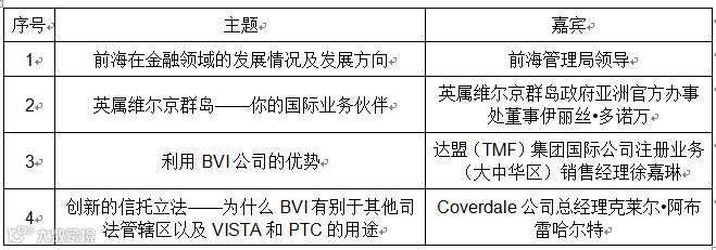 为进一步加强前海与英属维尔京群岛的交流合作,结合前海金融企业发展跨境金融需求,充分发挥两地在金融领域的特色与优势,我局与英属维尔京群岛行政委员会联合举办“前海-英属维尔京群岛合作发展论坛”,前海管理局领导和英属维尔京群岛政府亚洲办事处官员将在会上作演讲,届时将有逾百名前海金融服务企业代表、业界商业代表参会,共同探讨如何推动前海& BVI跨境金融业务的联动与发展。请将参会人员姓名、职务及联系方式报送我局。