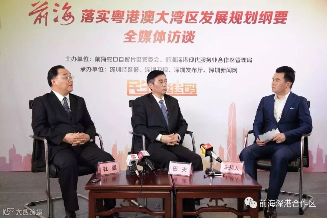 2月25日下午,“前海落实粤港澳大湾区发展规划纲要全媒体访谈”活动在前海深港青年梦工场举行。作为深圳市网络互动答政平台《民生二维码》系列访谈活动之一,本期访谈邀请到深圳市委常委、前海合作区党工委书记、前海蛇口自贸片区管委会主任田夫,和市政府党组成员、前海管理局局长杜鹏作为访谈嘉宾。两位嘉宾围绕“落实大湾区发展规划纲要 增强核心引擎功能 建设先行示范区和现代化强国城市范例”主题接受现场媒体提问并解答。