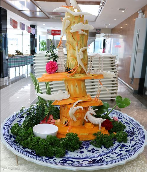 美食虽赏目,奈何不忍吃。看完了艺术范十足的美食,连连感叹师傅们的心灵手巧,食堂不仅让大家能享受到各种美食,还让大家可以欣赏到食物的艺术之美。师傅们全力以赴,大展伸手,把自己最棒的技术展示到美食节中。