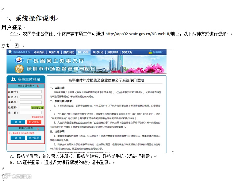 (二)深圳市市场监督管理局现已启动2015年企业年报检查,请您务必于6月30日前登陆http://app02.szaic.gov.cn/NB.webUI/完成企业年度报告填报工作,