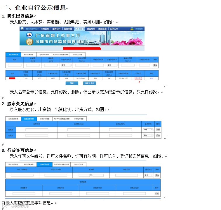(一)深圳市市场监督管理局现对企业公示情况进行检查,如贵企业未通过企业信用信息公示系统向社会公示贵司出资信息,请于6月30日前登陆http://app02.szaic.gov.cn/NB.webUI/完成企业股东或者发起人认缴和实缴的出资额、出资时间、出资方式等信息的公示(具体操作方法请参考附件《自行公示系统操作手册》。