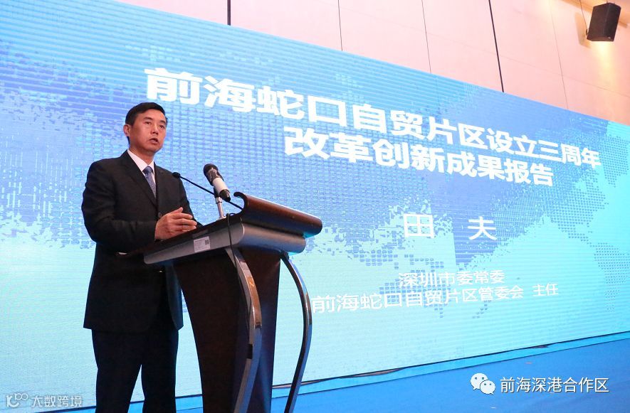 田夫在介绍三周年改革创新成果报告时表示,前海蛇口自贸片区三年开发开放成果丰硕,成为自贸区建设新标杆,挂牌成立以来,片区经济总量迈上千亿能级并持续跃升。