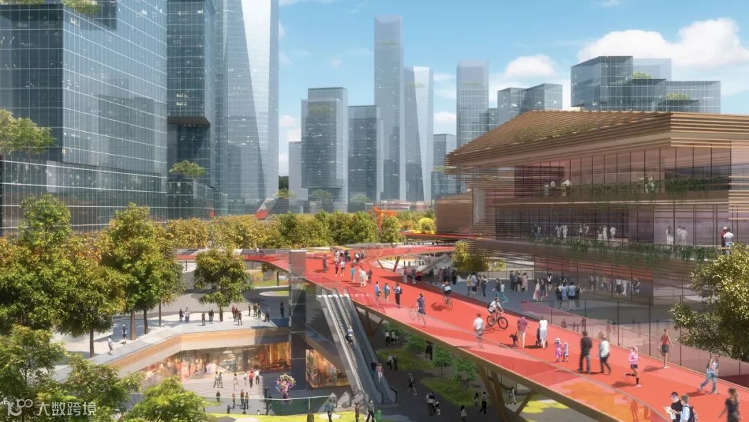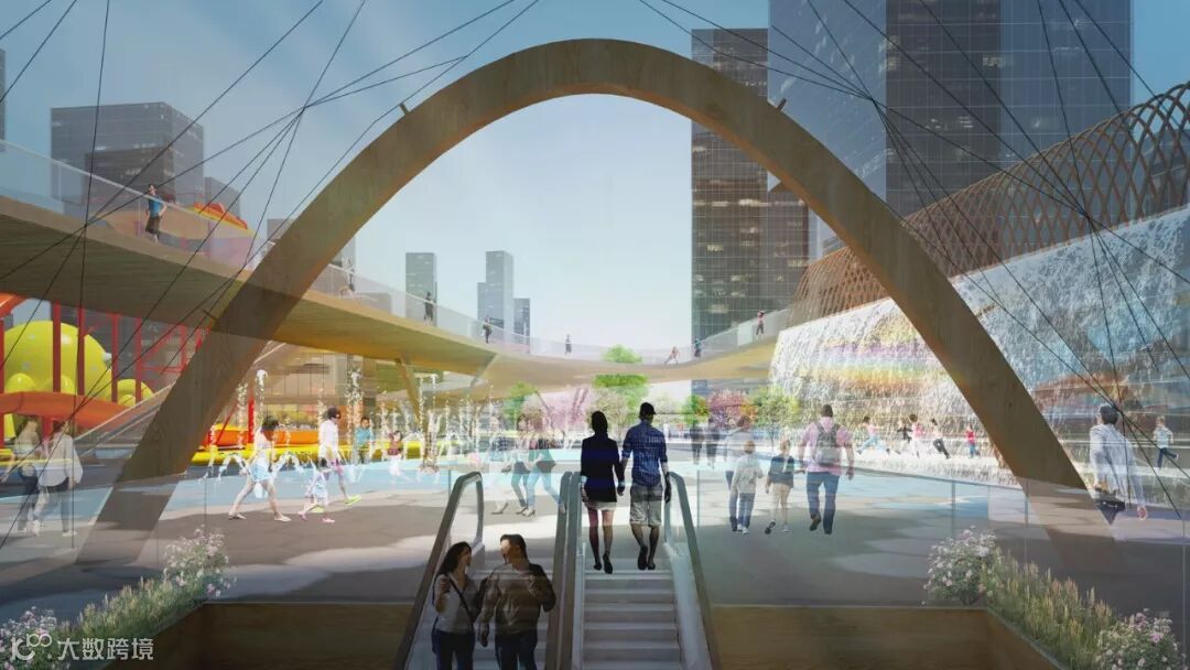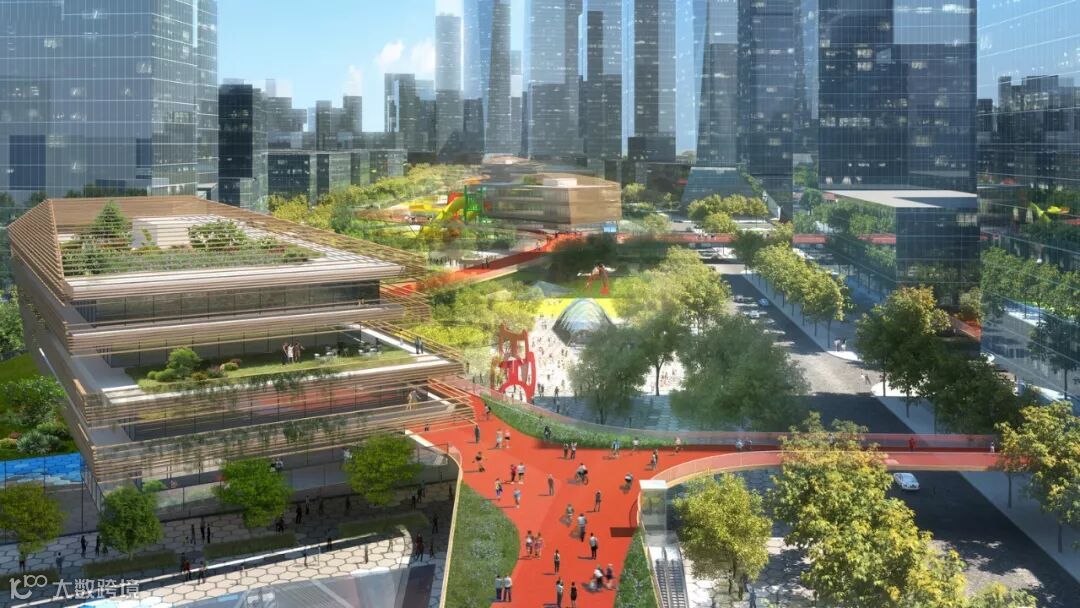 项目总体规划概念由四个层面组成,共同形成一个定位清晰的全新综合公共空间:地上地下的邻里空间、连贯的公园及多栋场馆建筑由一座空中平台在上层串联起来,联通整个项目开发。这条长 1.6 公里的空中平台作为“空中大道”同时也使其能联通更广泛的城市街道交通网络。空中平台还独有一条不间断的骑行及慢跑道,鼓励人们加强锻炼保持健康。