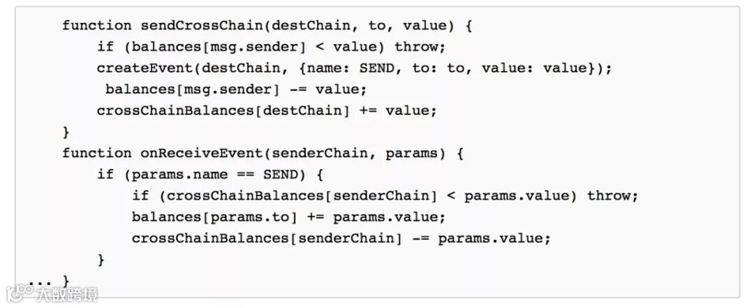 图2中代码需要在使用中继/侧链模式的两条链上同时存在,但同时需要两条链上的币或物是可以无限量发行的,这样才可以保证验证过程没有错误,从而来达到资产转移操作。中继/侧链模式的代表项目有BTC-Relay、RootStock、Polkadot、Cosmos等。下面将依次对各项目进行介绍。